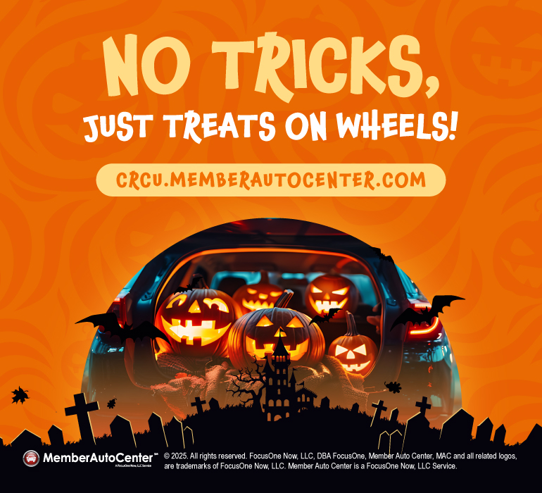 When you move your auto loan to CRCU, we’ll put an extra $100 in your pocket. It’s the season for cozy drives, crunchy leaves, and smart money moves — and we’ve got a rate you’ll fall for.