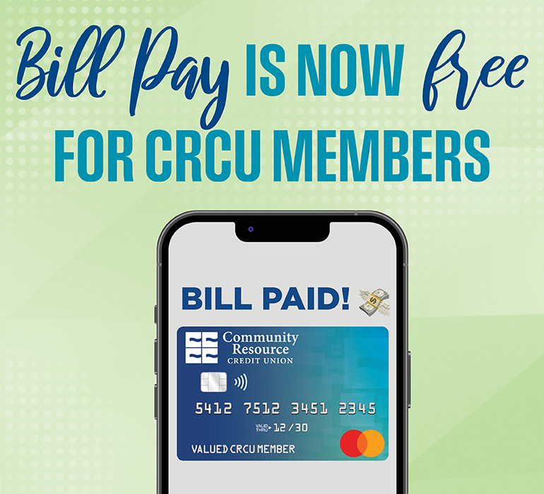- Free for all CRCU members via online & mobile banking